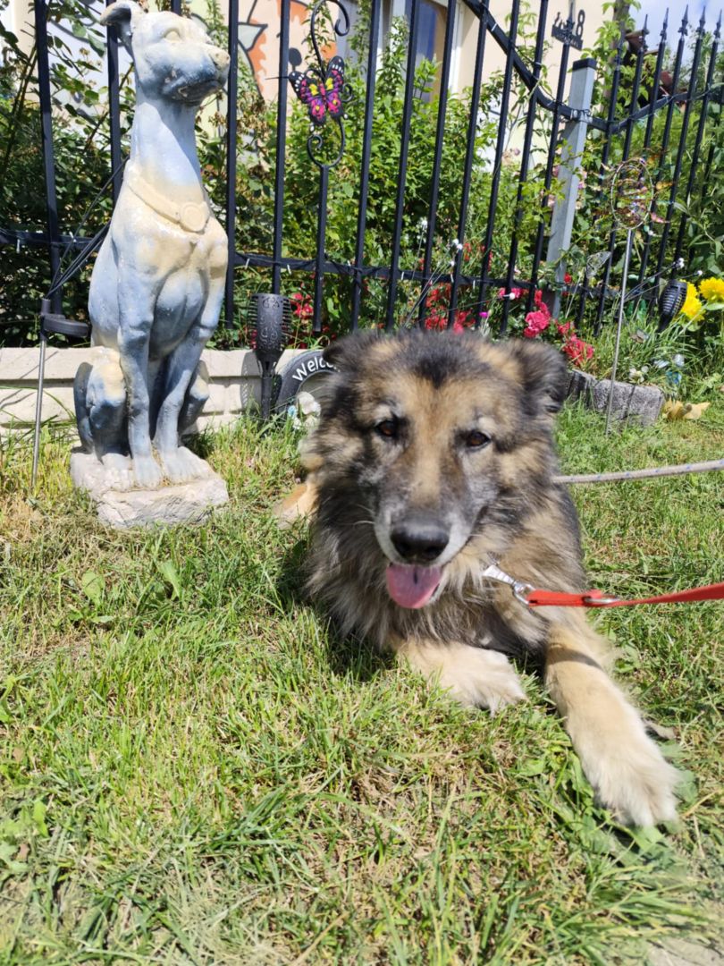 Aron to starszy pies w typie owczarka, który błąkał się bardzo długo. Trafił do gminnego kojca, a stamtąd do Schroniska.