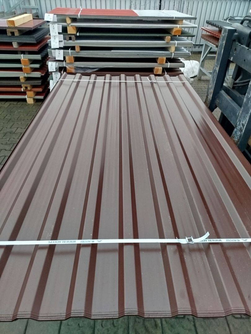 Blacha trapezowa brąz - pakiety 50 sztuk. Tanio i od ręki