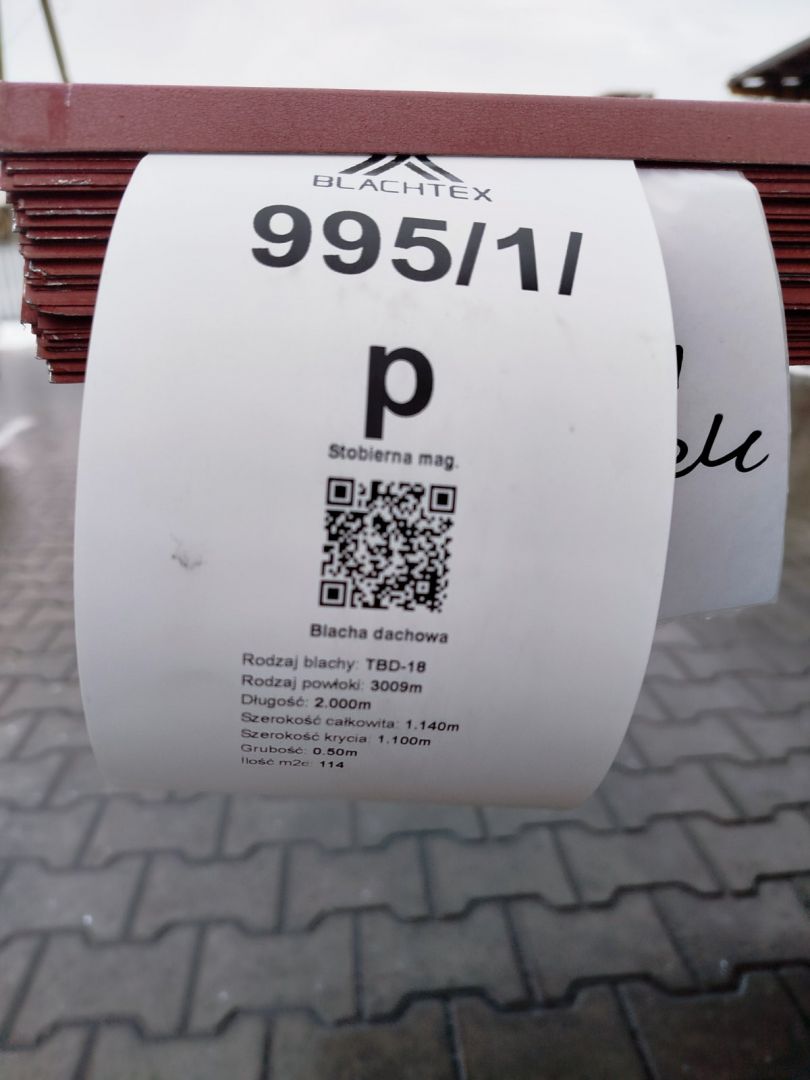 Przedmiotem sprzedaży jest paczka blachy, pakiet trapezu dachowego, w profilu TBD-18, kolor RAL 3009, czerwień tlenkowa w powłoce matowej.
