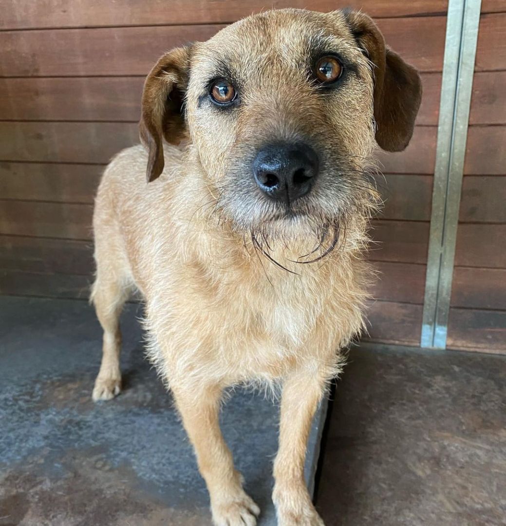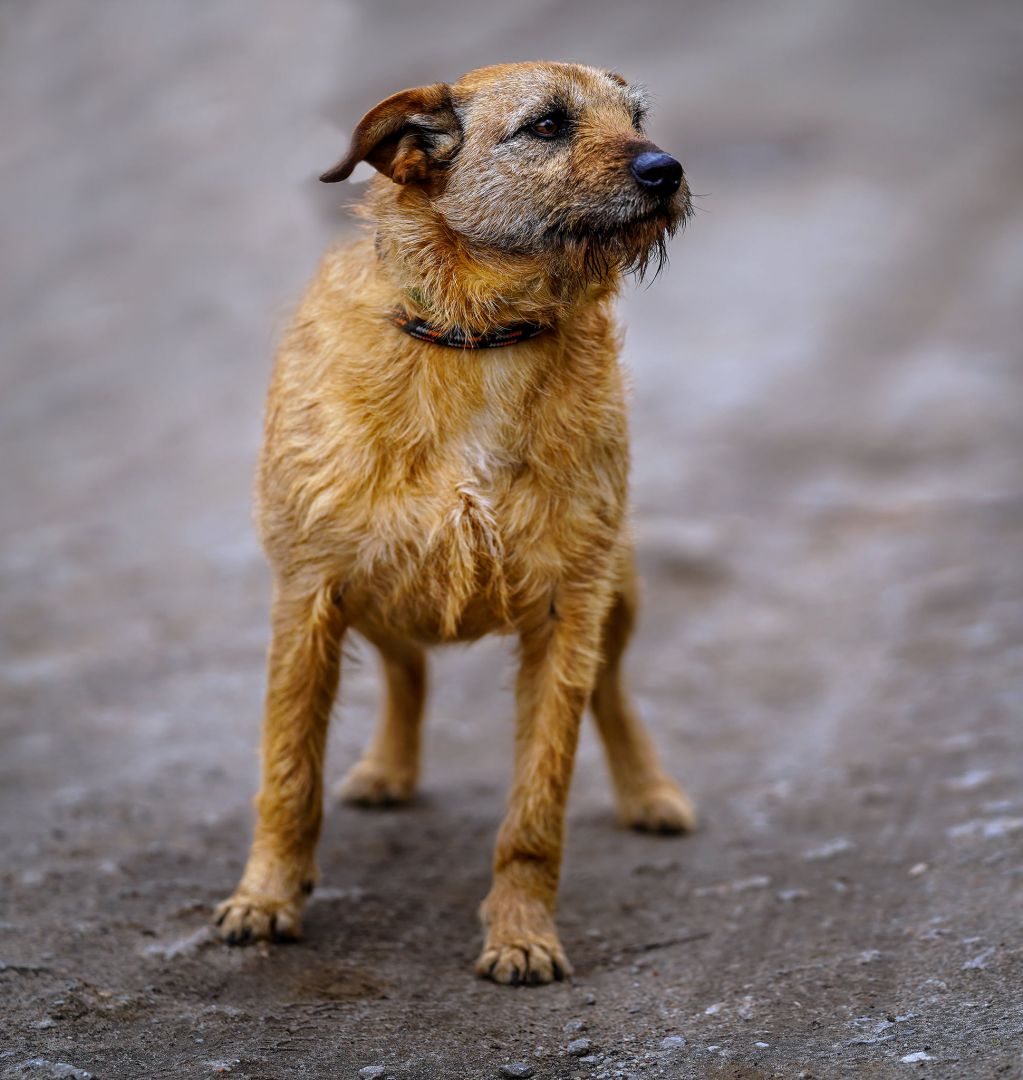Fuks jest młodym, energicznym, o nietypowej urodzie psem (ma szorstki włos).