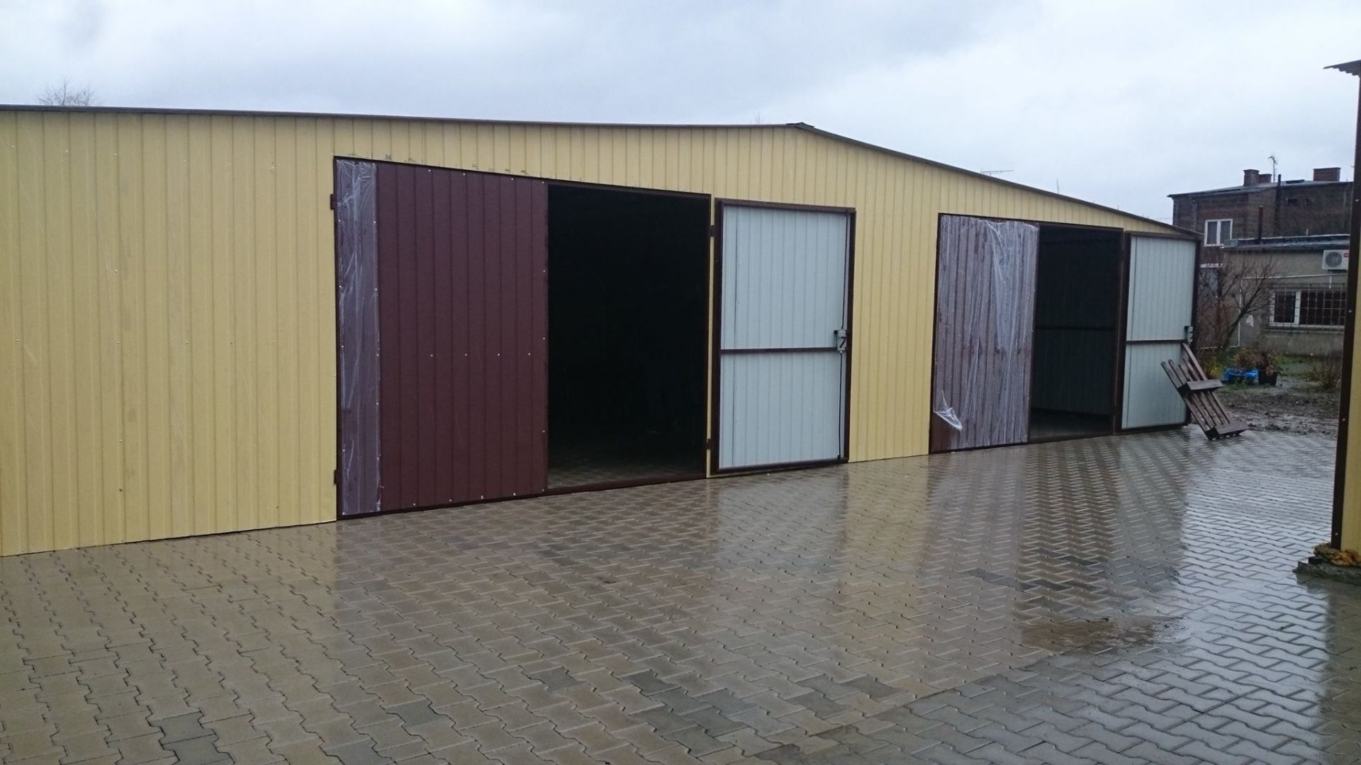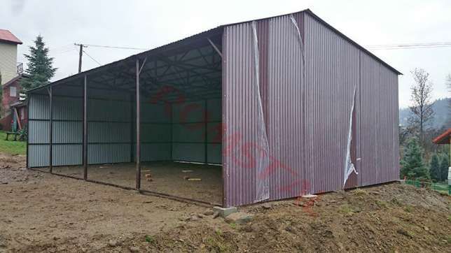 GARAŻ BLASZANY wielostanowiskowy WYSOKI - dwuspadowy w kolorze "ŻÓŁTYM " o wymiarach : 15 x 6m .