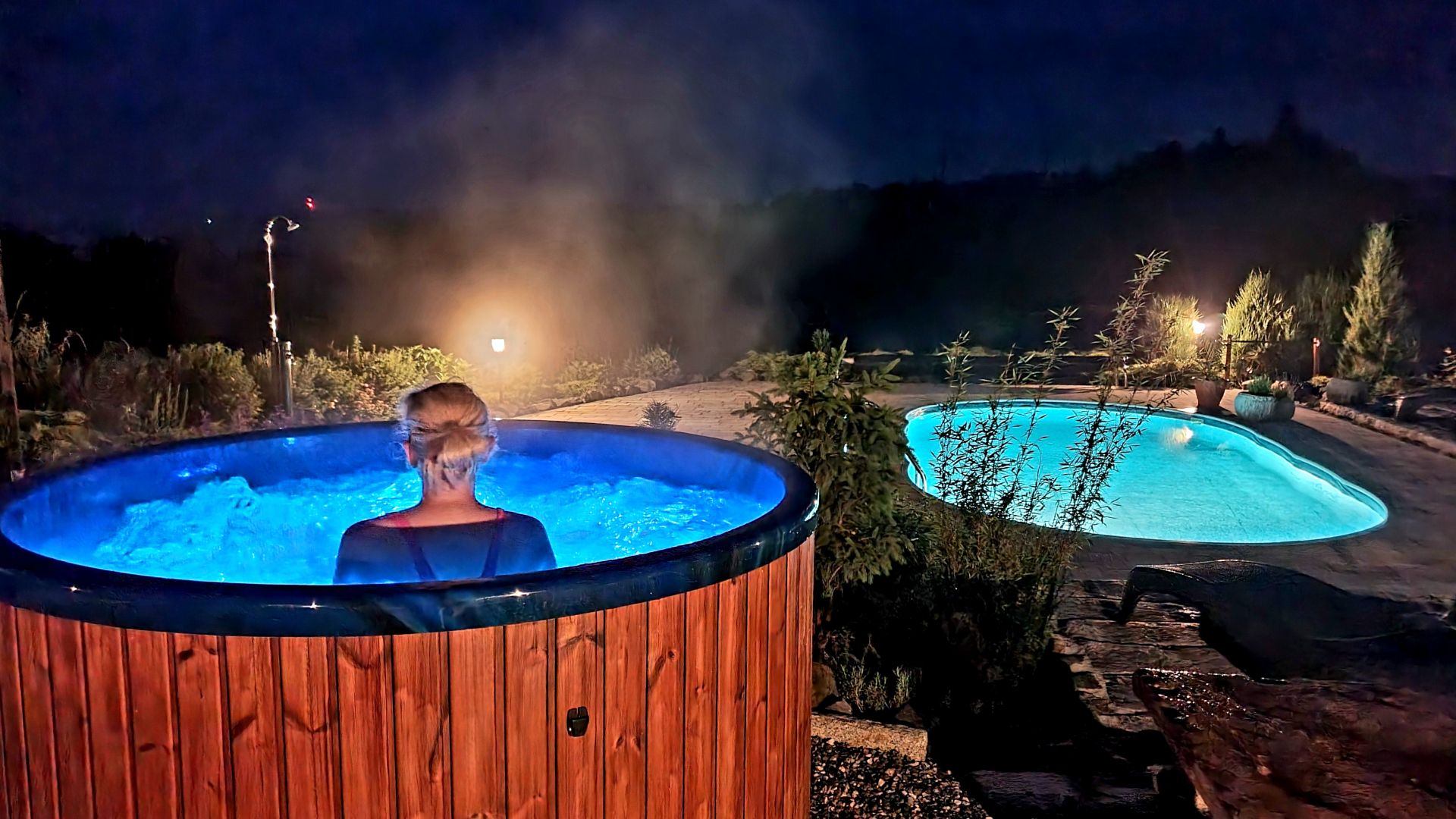 - jacuzzi/gorącą balią z areomasażem, podświetleniem - gotową do użytku dla gości 24h/dobę (balia bezobsługowa) - opcja dodatkowa