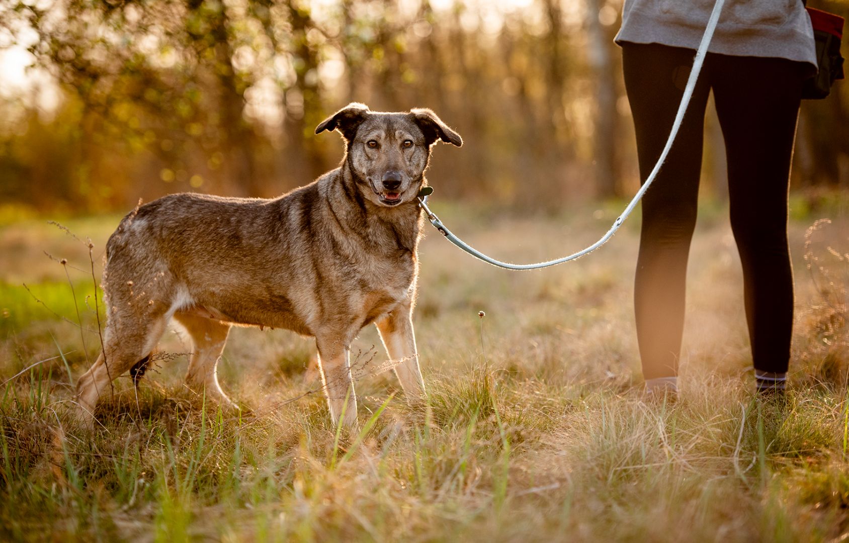 Karinka uczy się chodzić na smyczy - póki co ją to paraliżuje, dlatego mile widziany dom z ogrodem.